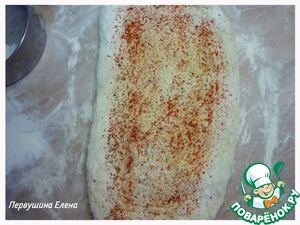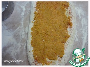 Раскатываем пласт овальной формы. Смазываем яичным желтком.