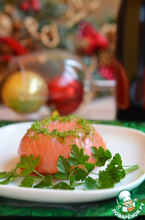 Перед подачей аккуратно провести тонким ножом по краю пиалы, чтобы отделить рыбу от стенок, и перевернуть вверх дном, извлекая получившиеся мешочки из семги.