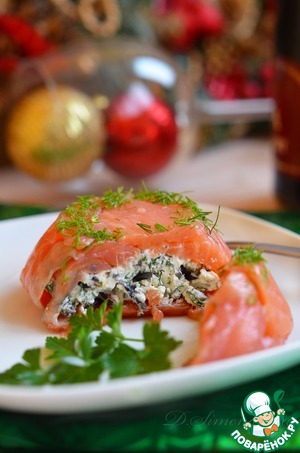 Выложить начинку в мешочки из семги. -