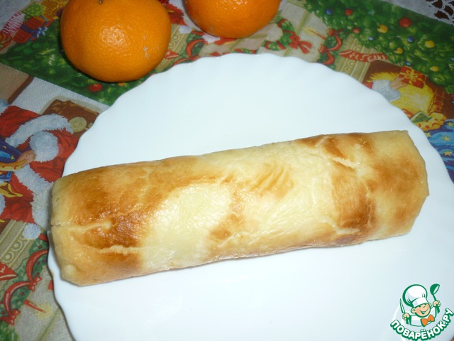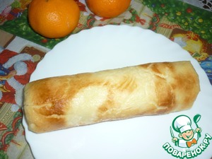 Сначала нужно испечь блинчик. Для одного блина - 1 яйцо смешать с 1 ст. л. майонеза и 1 ст. л. муки, чуть подсолить. Перемешиваем и обжариваем блинчик с 2 сторон.
