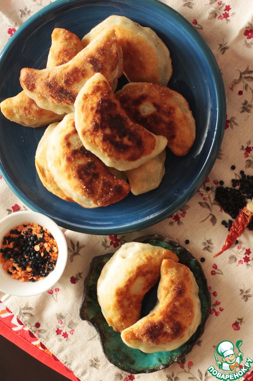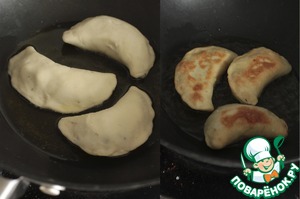 В сковороде или воке разогрейте оливковое масло, выкладывайте пироги и обжаривайте с обеих сторон до образования золотистой корочки.