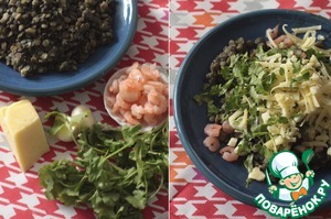 Ингредиенты для «Рисовые пирожки с чечевицей и креветками»: