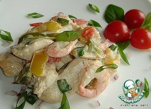 очищенные креветки и прогреть соус (чтобы креветки стали теплыми) -