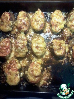 Помидоры нарезать тоненькими ломтиками, выложить сверху на котлеты (я пару котлет плохо защипнула, и из них вытекло масло (видно на фото)) -