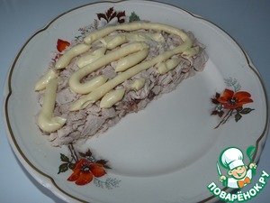 После слоя грибов тоже следует нанести майонез. Но я в этом слое майонез пропускаю. -