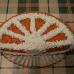 Все слои уже готовы. Теперь выкладываем по всей поверхности и по бокам морковку.