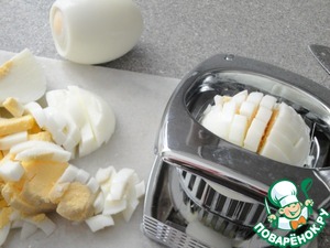 В чашке смешать сыр (на этот раз у меня с перцем, также очень вкусно с хреном), рыбу, яйца, укроп и желе. Если получится слишком густо, добавьте чуть-чуть сметаны.