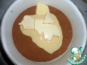 В печенье добавляем сгущенное молоко и размягченное сливочное масло в равных пропорциях. Здесь, точно-чего сколько-вплоть до грамма, сказать не могу, т. к. качество сгущенки разное: одна жидкая, другая густая. У меня ушло примерно по 2-3 "добрые" столовые ложки и масла по 50 гр.