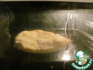 Вырезанный корж ставим в духовку выпекаться согласно инструкции к тесту на упаковку. У меня вышло около 15 мин на каждый корж. Нужно следить, чтобы не пересохли в духовке.