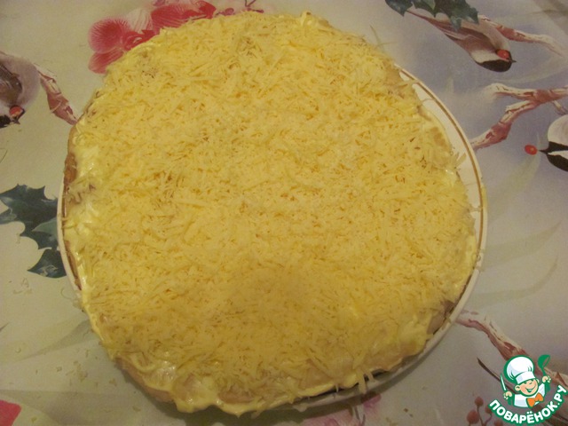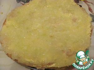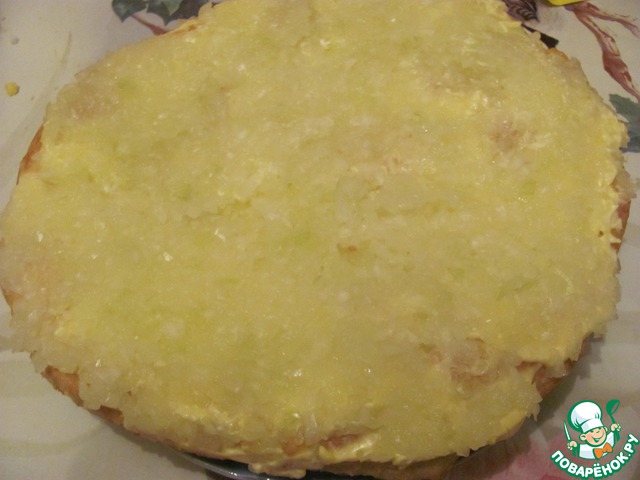 И четвертый корж: трем на мелкой терке предварительно отваренные яйца.