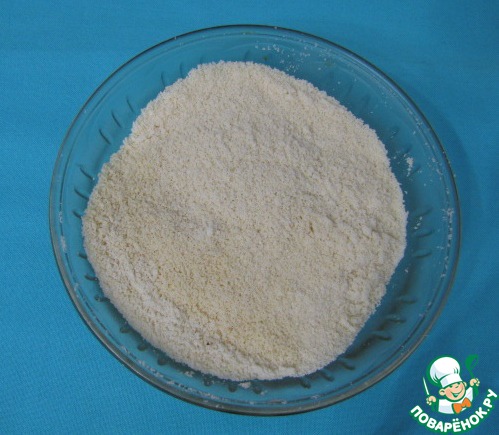 Миндаль обдать кипятком, снять шкурки, просушить в духовке, перемолоть и просеять.