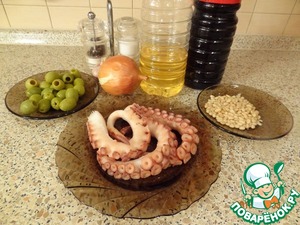 Горячая закуска из осьминога с оливками и кедровыми орешками