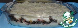 Выложить в форму половину пюре и распределить равномерно по дну.