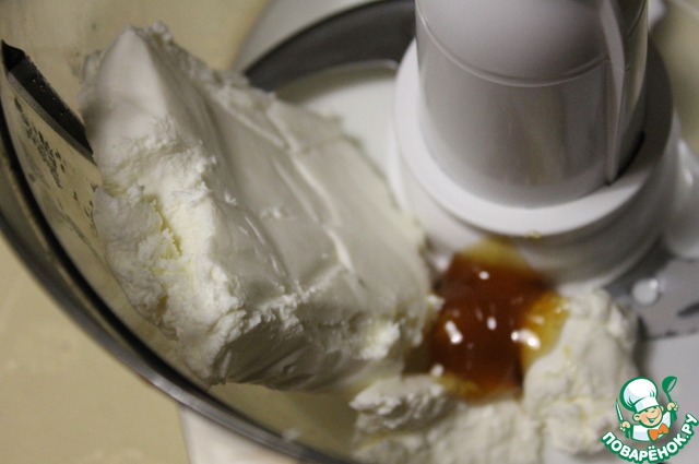 Обезжиренный творог взбить с 4 ст. л. молока, медом, ванильным экстрактом - насадкой ножи. Тогда комочки все разбиваются, получается нежная однородная масса, и не надо будет протирать через сито