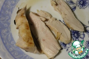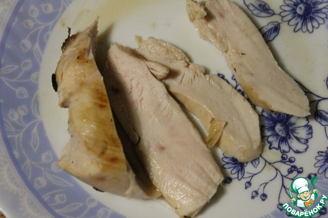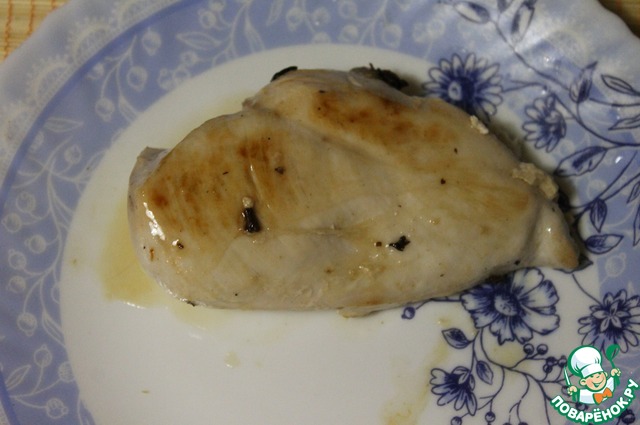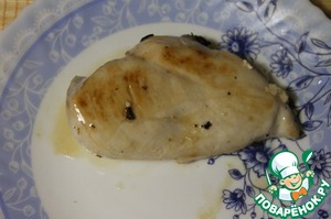 Куриную грудку посолить, поперчить обмазать чесноком и обжарить на растительном масле
