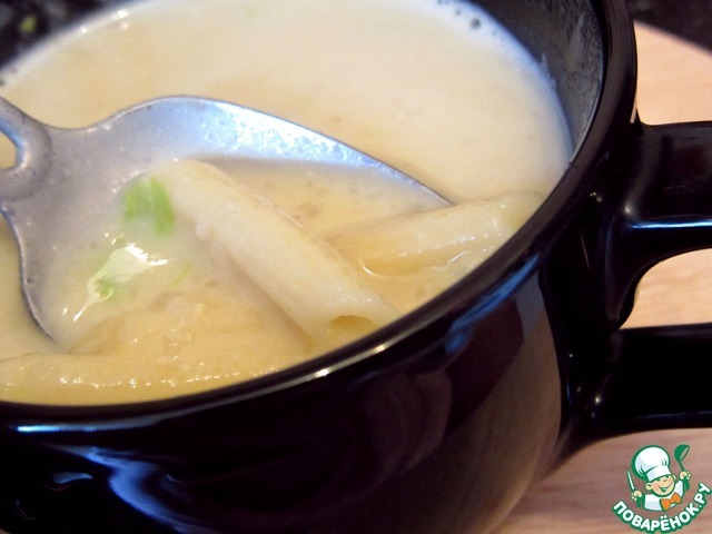 Суп-пюре из чечевицы с макаронами и сливками
