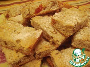 Нарезать на печенья, слегка посыпать сахарной пудрой.