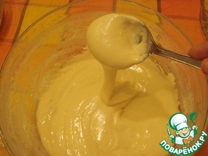 Добавить ванилин и разрыхлитель, постепенно всыпать муку.