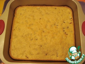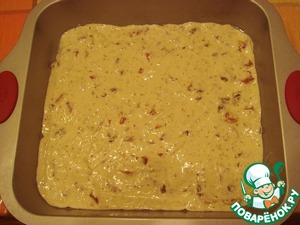 Аккуратно вмешать сухофрукты и орехи в тесто, вылить в смазанный маслом противень (у меня 27 на 24).