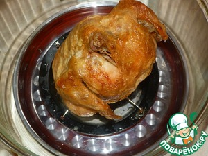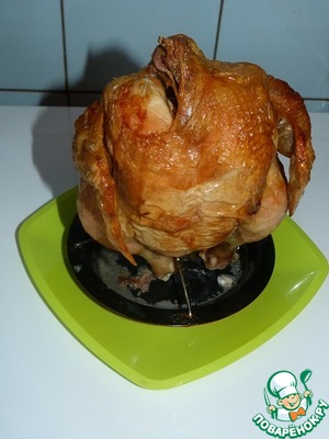 Вспомнилось, что в давние времена, когда об аэрогриле даже не мечтали, курочку "сажали" на стеклянную бутылку, наполненную водой.