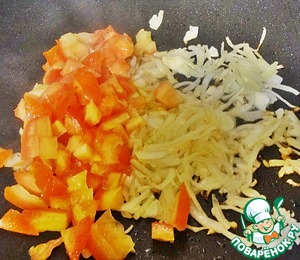 В этой же сковороде обжарить чеснок и нарезанные мелко помидоры. Можно добавить и 1 ч. л. томатной пасты.