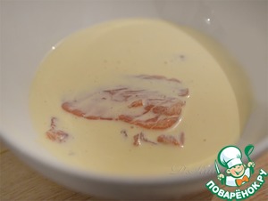 Приготовим розовый мусс. Соединим семгу и сливки и хорошо измельчим блендером до состояния мусса.