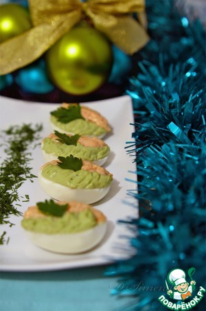 Осталось только нафаршировать половинки яиц этими муссами, украсить зеленью и подать к праздничному столу. Единственное примечание, что готовить нужно перед подачей и съесть в первую очередь, так как авокадо неизбежно рано или поздно начнет темнеть и вид уже будет не тот.