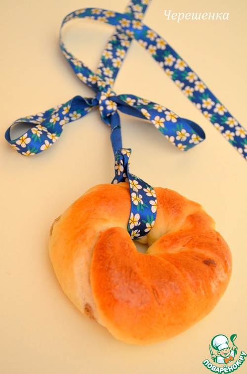 Можно булочку повесить на дверь в виде венка, очень красиво и необычно!