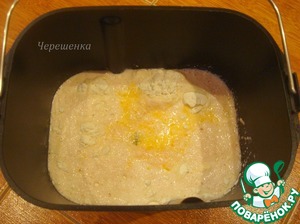 Тесто я замешиваю в хлебопечке, для чего кладу в чашу последовательно муку, ванильный сахар, соль, масло, взбитое яйцо, сок и цедру апельсина и воду с растворенными в ней дрожжами. Конечно, можно замесить тесто и руками.