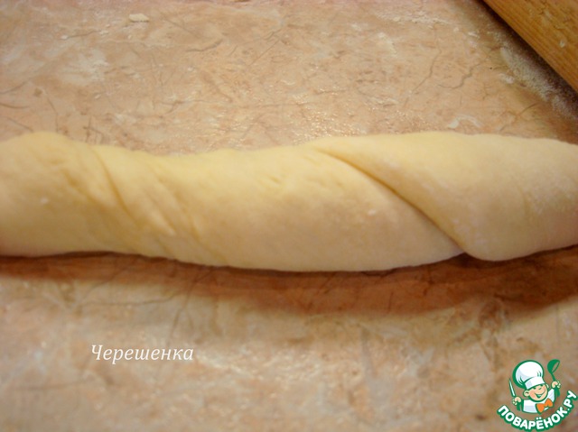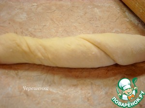 Скатать лепешку в рулет, растянуть его в стороны и перекрутить в жгут.