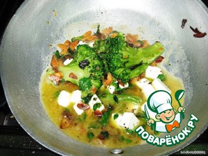 Кладем броколли, орегано, соль, перец жарим 2-3 минутки