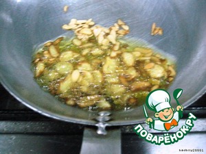 Чеснок и миндаль жарим в оливковом масле до золотистого цвета чеснока