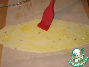 Яйцо взбить с одной ложкой воды. Каждый лист смазать яйцом.