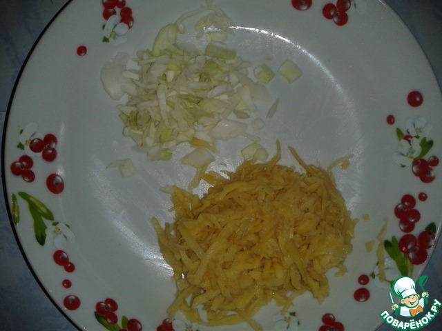 Натереть картофель на терке, капусту нашинковать. Все это перемешать и посолить по вкусу.