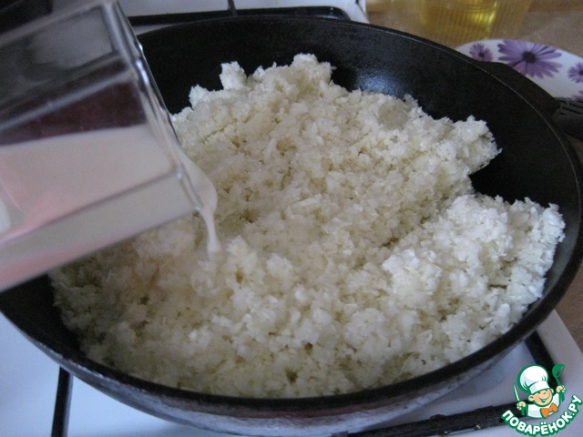 Добавляем капусту и заливаем ее молоком. Закрываем крышкой и тушим до полуготовности 10 минут.