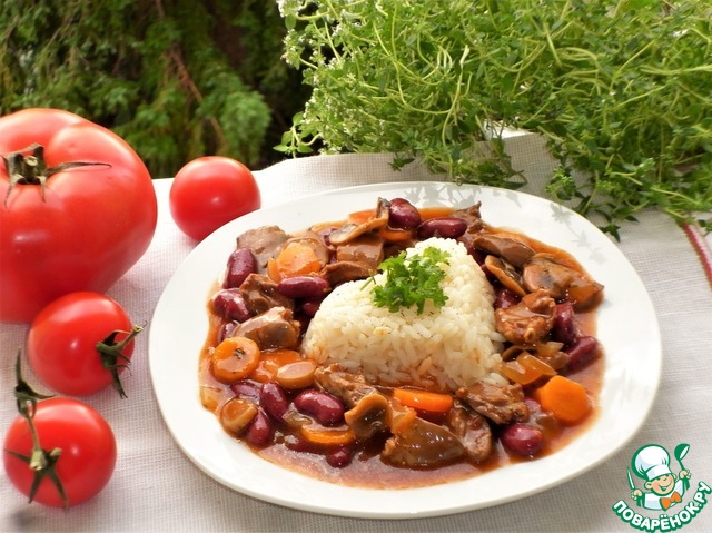 Рецепт «Тушёные куриные сердечки с фасолью и грибами»: