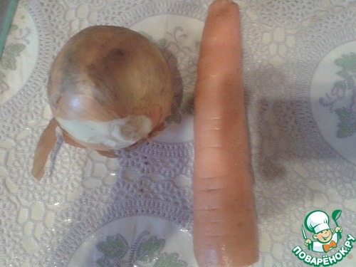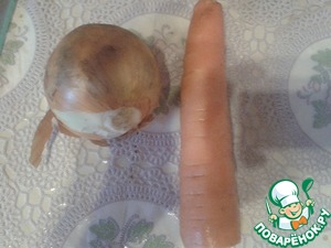 Очищаем морковь и лук. Морковь опаливаем на газу (чтобы бульон был прозрачным). Кидаем в кастрюлю. Варим 2 часа. Солим, кидаем лавровый лист. Варим час.