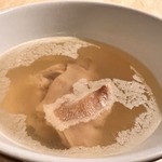 Достаем из бульона мясо, морковь и лук. Даем остыть. Добавляем в бульон чеснок.