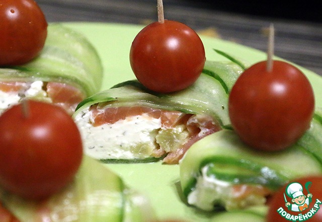 Предлагаю Вашему вниманию простой рецепт вкусной закуски. Очень понравилось сочетание свежего огурца, деликатесной рыбы и сливочного сыра. Надеюсь, понравится и Вам!