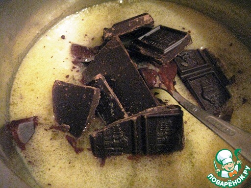 Добавить расколотый шоколад. Дать постоять 2 минуты. Объединить и охладить 10 минут.