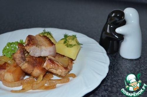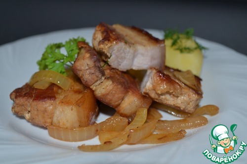 Рецепт «Тушёная cвиная грудинка с луком»: