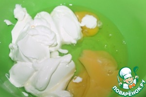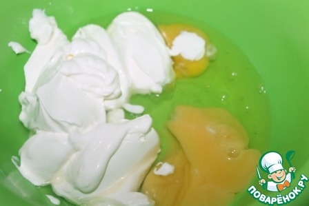 Яйца взбиваем со сметаной. -