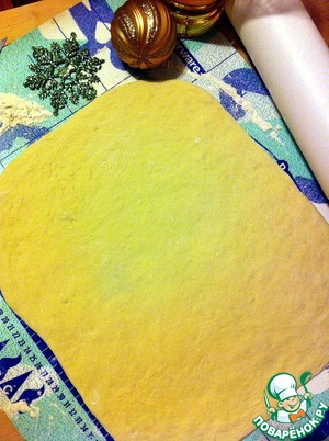 Раскатываем тесто в прямоугольник толщиной не более 5 мм. -