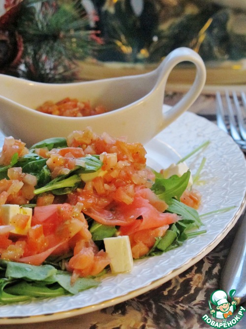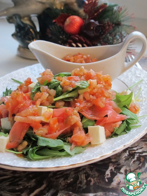 Рецепт «Салат с рукколой, лососем и имбирем»: