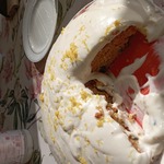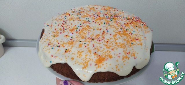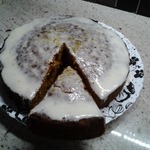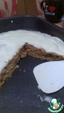 Добавляла ещё 50 гр крупно рубленых грецких орехов, изюм не добавляла - не любим его. Текстура вклажная слегка, при этом пористая и воздушная. Насыщенный, много специй добавляла для рождественской выпечки. Кстати, вкусно и без глазури. Глазурь сладкая очень вышла, я бы поменьше сгущенки добавила.