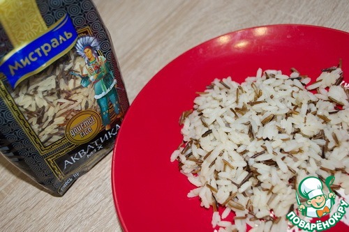 Рис можно сварить заранее. Я взяла смесь белого и дикого риса.