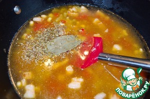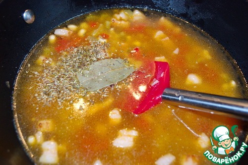 Влить 2 стакана воды и добавить травы и специи. Не солить!