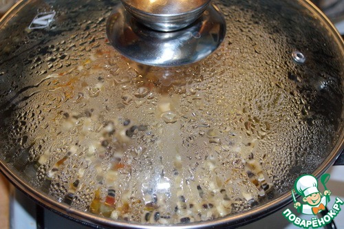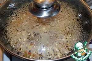 Довести до кипения, включить минимальный огонь и закрыть крышкой.
