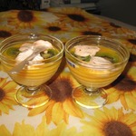 То же самое проделать и с персиками. Получится два вида пюре. Желатиновый раствор разделить пополам и ввести в пюре, перемешать. -