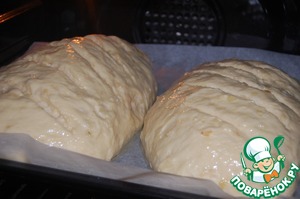Тесто оставляем подниматься на 30-40 мин., еще раз обмять и оставить еще на 30 мин.